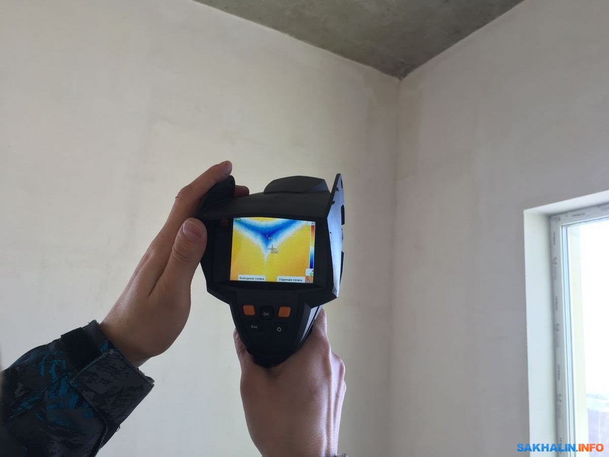 Еще до ремонта мужчина провел тепловизорное обследование квартиры, исследование показало промерзание внешних стыков стен с потолком. Об этом владелец квартиры сообщил застройщику компании "СахинСтрой". Там к выявленной проблеме отнеслись с пониманием и летом пообещали фасад утеплить. Правда, к этим работам так и не перешли.