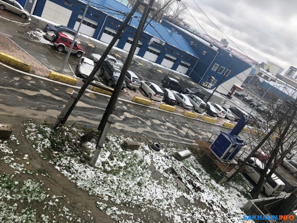 Улица Тельмана в Южно-Сахалинске утонула в колдобинах