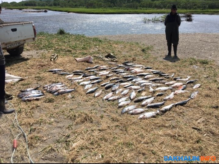 Таким способом им удалось добыть больше 100 особей симы. Второй дуэт нарушителей орудовал 10 июня в устье реки Большой Тамбовки. Браконьеры также полностью перегородили реку 100-метровым "ставником". Сотрудники силовых структур обнаружили у них 114 особей "элитного" лосося.