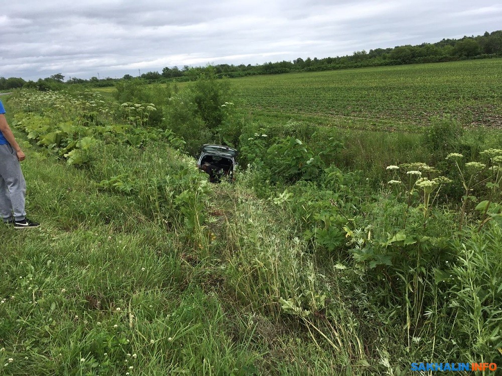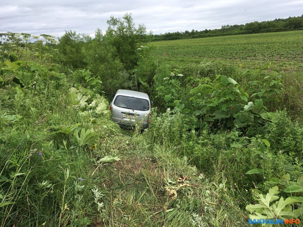 Иномарка съехала в овраг неподалеку от Анивы