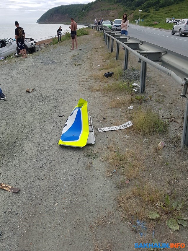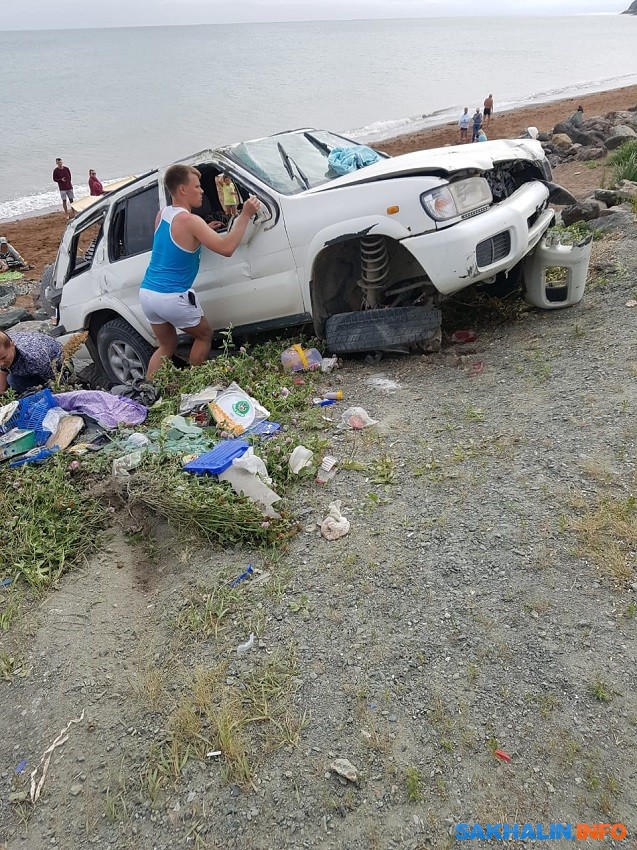 ДТП с пострадавшими произошло сегодня в Корсаковском районе. Около 19:00 водитель белого внедорожника не справился с управлением на дороге, ведущей к заводу СПГ. В результате этого иномарка перелетела через дорожное ограждение на прибрежные камни.