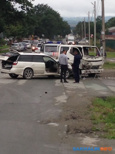Грузовик и универсал столкнулись на улице Украинской в Южно-Сахалинске