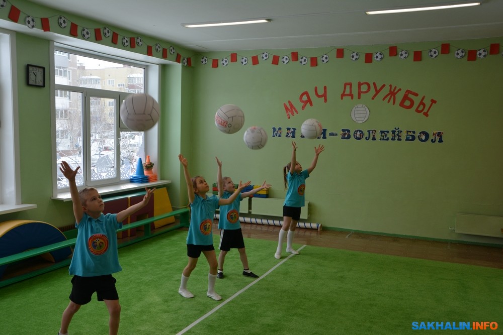 Открытое занятие по мини-волейболу для гостей из Якутии провела инструктор по физкультуре Ольга Никонова. Занятие началось с разминки с мячами — на месте в движении. Затем дети показали свои умения в передачах и подаче мяча, продемонстрировали навыки в двухсторонней игре. Вместе с педагогом выполнили упражнения для развития ловкости и силы.