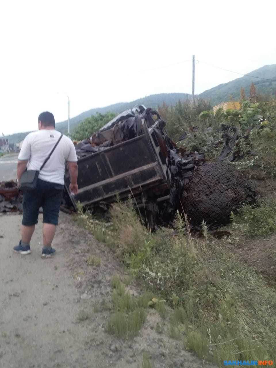 По словам очевидца, водитель грузовика не пострадал. Он смог самостоятельно выбраться из кабины. На место происшествия прибыли сотрудники холмской госавтоинспекции.