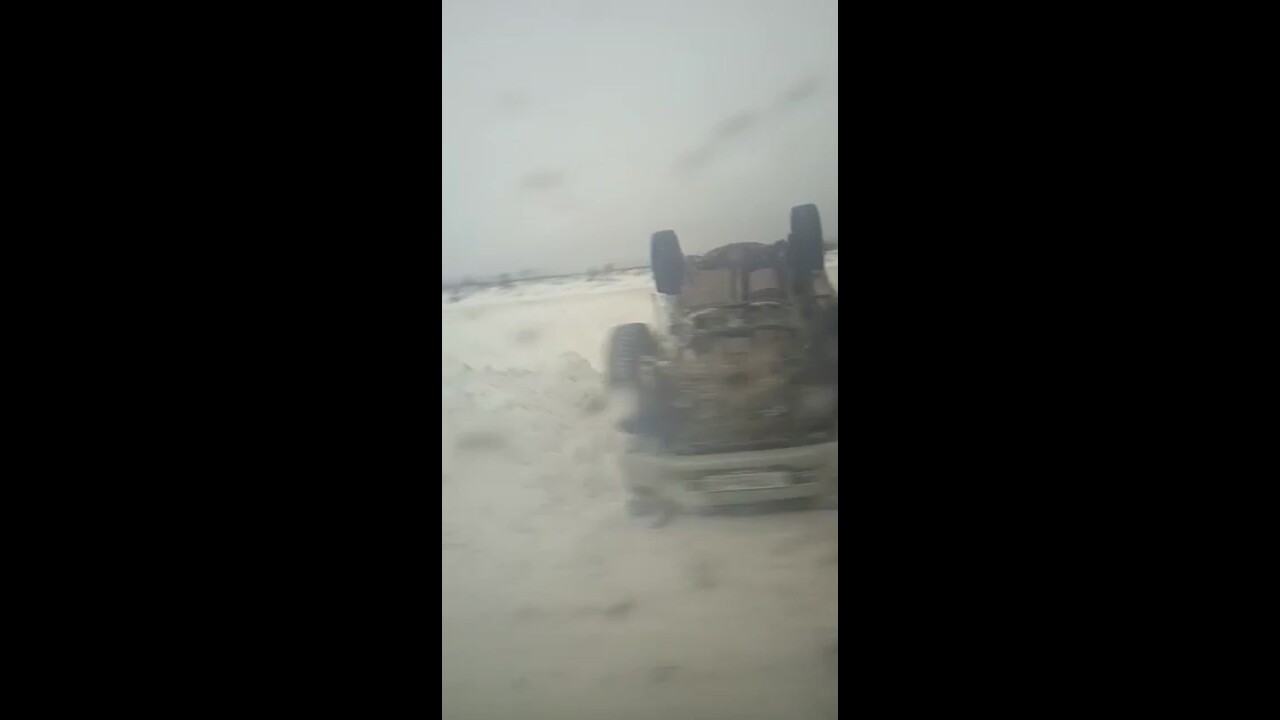 Соавтор ИА Сах.ком сообщил, что Toyota Hilux Surf из-за гололедицы закрутило на дороге, в результате автомобиль перевернулся.