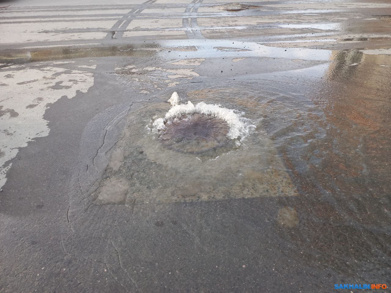 Как рассказал директор по производству "РВК-Сахалин" Станислав Купчинский, причиной аварии послужила ветхость сетей. Ввиду высокого давления вода вышла за периметр колодца и распространилась по улице.