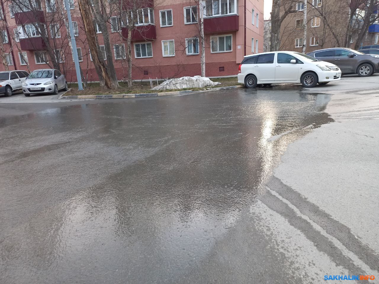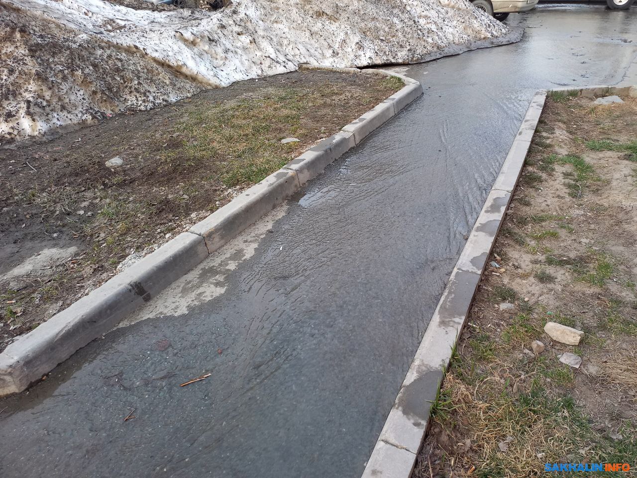 Утро в восьмом микрорайоне Южно-Сахалинска началось с потопа. Как сообщает соавтор ИА Сах.ком, вода разливается с проезда Михаила Зацаринного и растекается по дворам и дорогам микрорайона. Вода как минимум дошла до района "Луча".