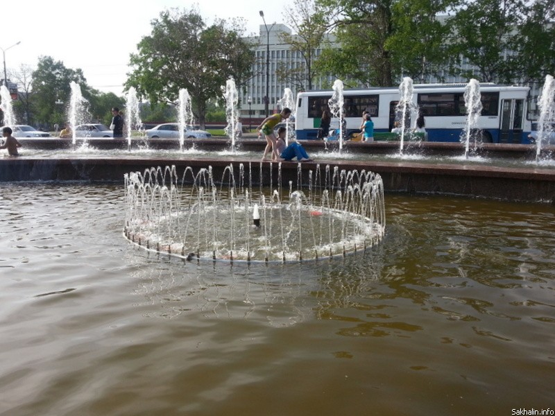Между тем, другие фонтаны в Южно-Сахалинске находятся в более приличном состоянии. Так, подобный объект на привокзальной площади Южно-Сахалинска регулярно чистится, вода в нем прозрачная и свежая. Еще один красивый чистый фонтан работает у здания Краеведческого музея.