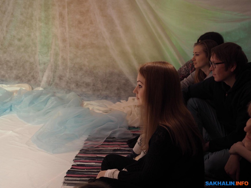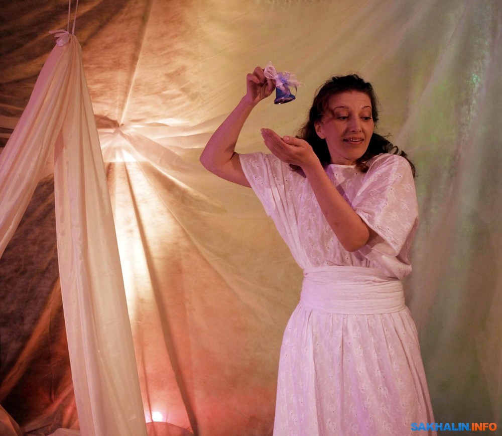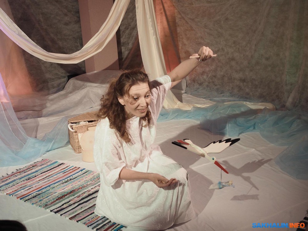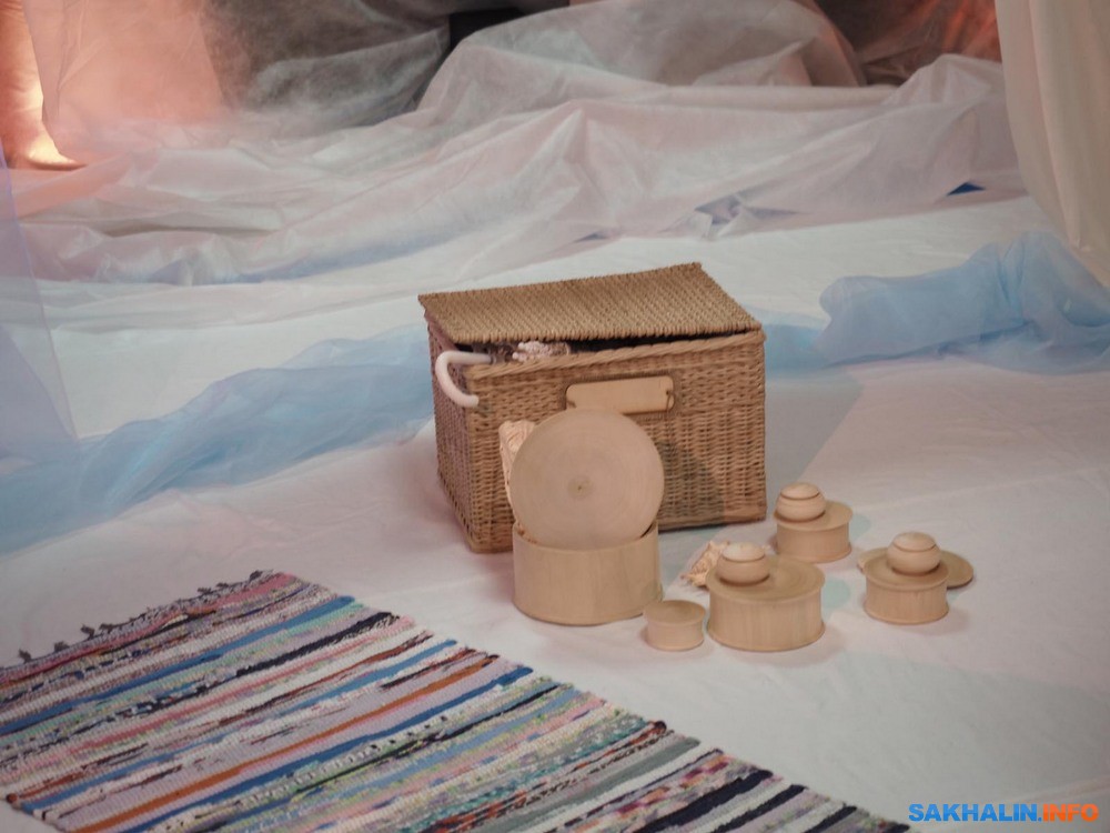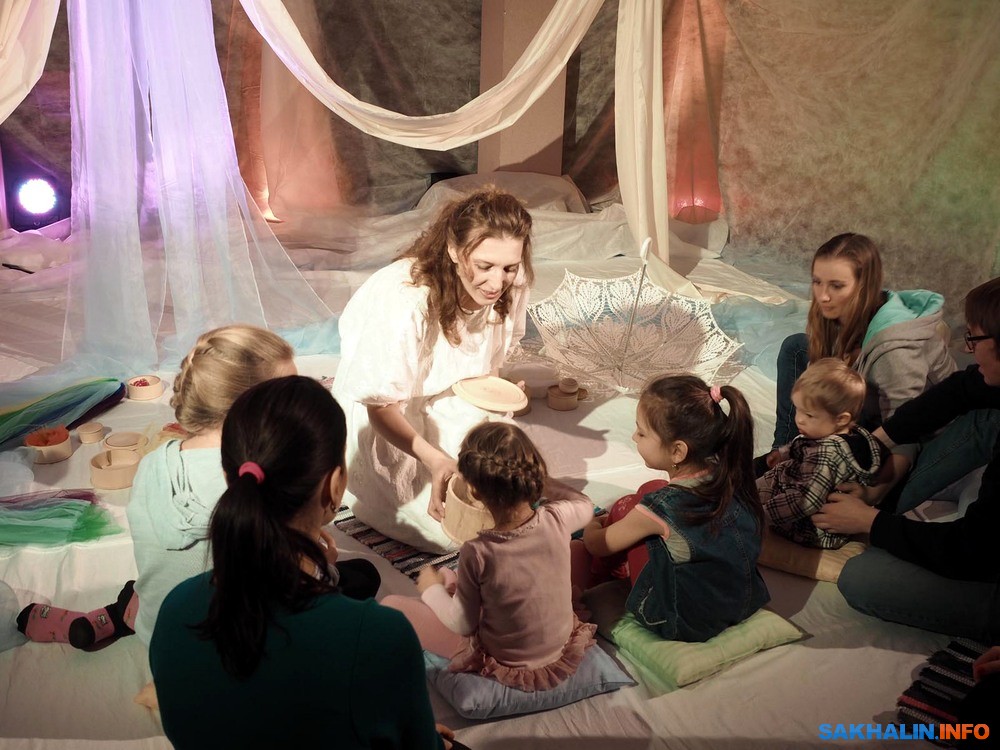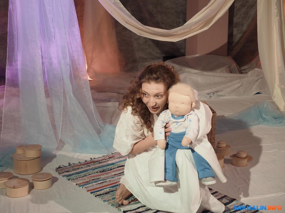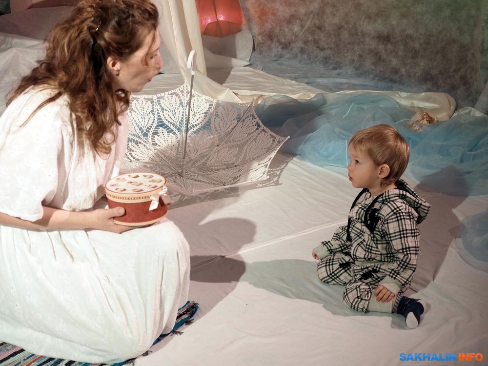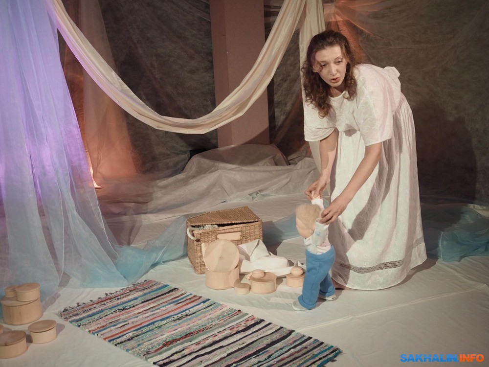 Бэби-театр для сахалинских родителей уже перестал быть незнакомцем. В этом формате созданы и стали весьма популярны "Сновидения", "Первый снег", "Вода". Они недолги, насыщены движением и визуальными образами, в них не надо молча сидеть и смотреть, но приветствуется активное участие в действие. С этих мини-спектаклей начинается комфортное приобщение к театру малышей, живущих в мире красок и звуков. В театр "Инсайд" его зрители буквально "вползают", потому что он рассчитан на публику от годика. Для Оксаны Исаевой рождение сына стало отправной точкой для сочинения спектакля, как и в целом для того, что актриса заинтересовалась педагогикой раннего развития. В спектакле "Чудо-день" все ручной работы, начиная с вальдорфской куклы Елисея, которая в сахалинском варианте выходит на сцену вместе с актрисой Олесей Смирновой.