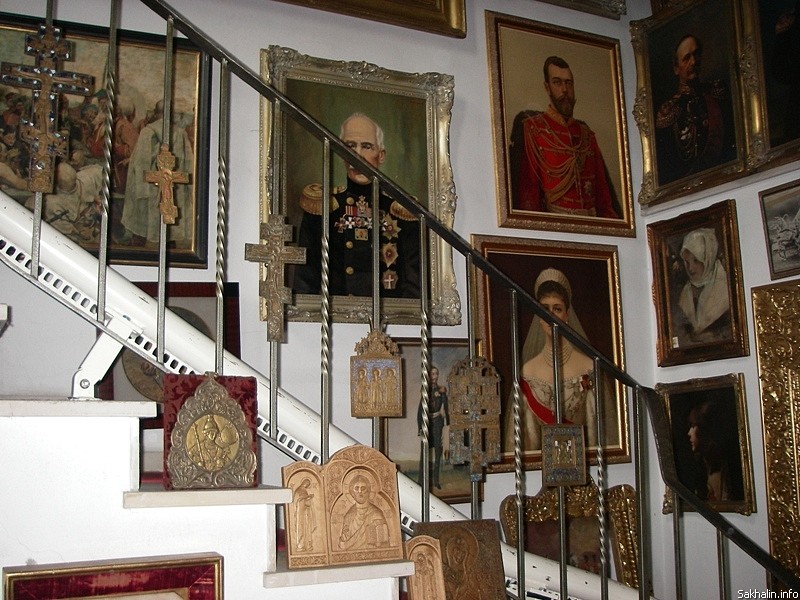 За порогом виллы попадаем словно в музей. На стенах большие портреты Николая Второго, важных персон прошлых веков. Лестница уходит налево вверх, впереди комнаты. Несмело озираемся, куда идти? Из глубины виллы раздался повелительный голос: