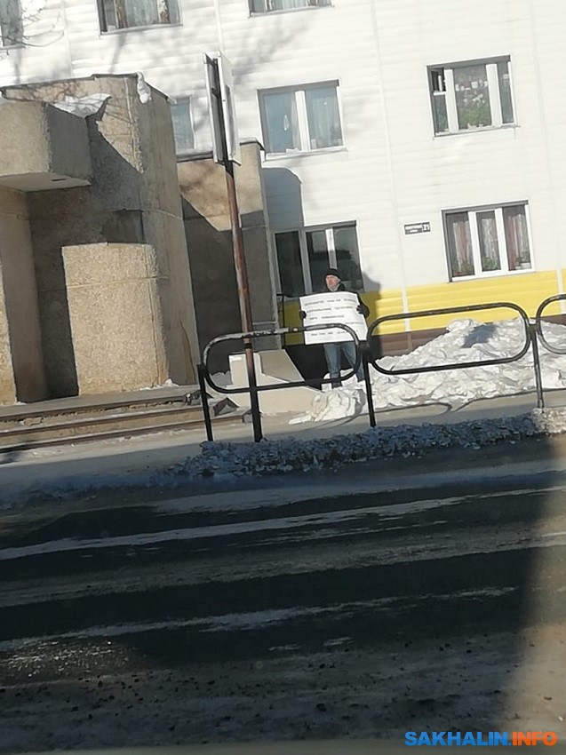 В Ногликах проходит одиночный пикет за Курилы и против пенсионной реформы