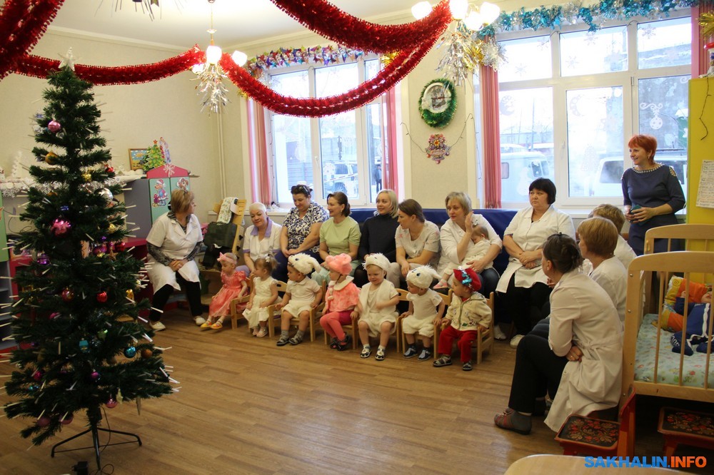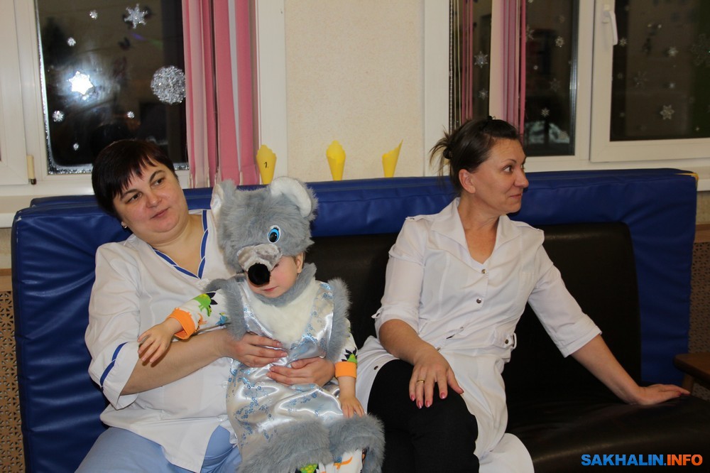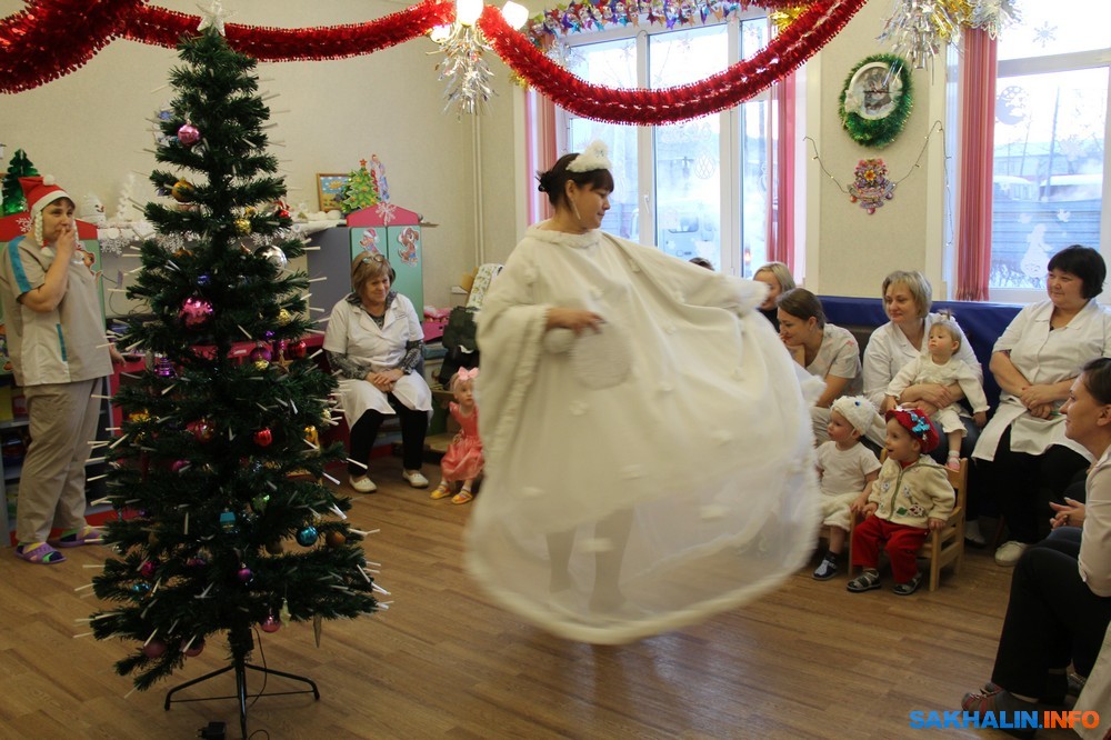 Вместе с главным врачом ГКУЗ "Сахалинский областной специализированный дом ребенка" Марией Старостиной мы спешим в старшую группу на новогодний утренник.