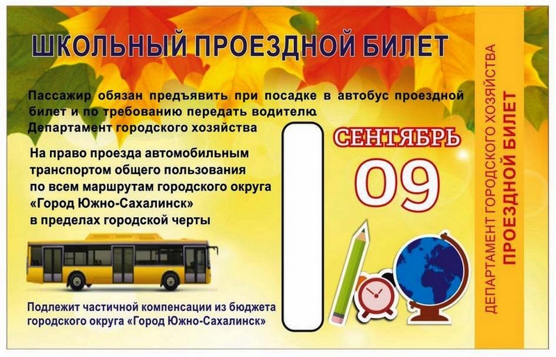 В Южно-Сахалинске вводятся школьные проездные билеты для учащихся 1-11 классов. Реализация билетов на сентябрь начинается 24 августа. Стоимость проезда для юных горожан на общественном транспорте в течение месяца с учетом компенсации от муниципалитета составит 400 рублей.