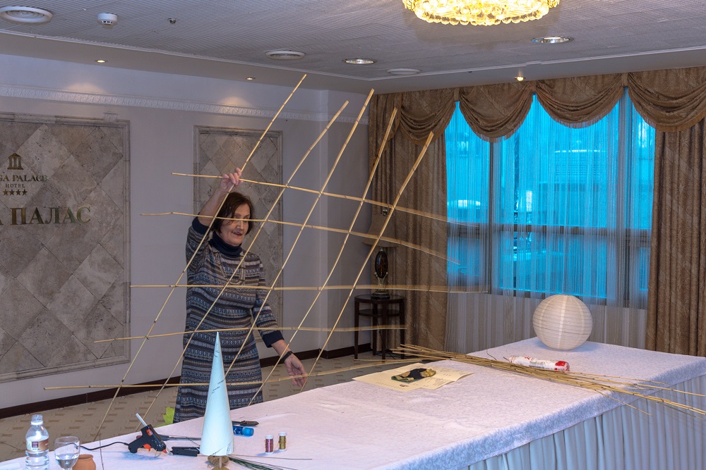 На своём мастер-классе Александра Кудряшова посоветовала и дала рекомендации, как необычно взглянуть на ёлку. По словам дизайнера, которая много лет жила и работала в Японии, необходимо учиться находить красоту в простоте. Под этим девизом был выстроен весь урок. Зрителям были представлены несколько идей, главная из которых — использование подручных и природных материалов в изготовлении необычных ёлок.