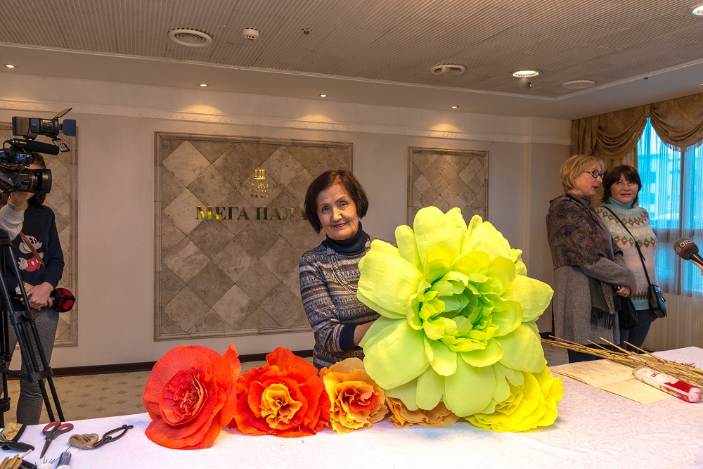 Главным трендом года, по мнению дизайнера, являются огромные бумажные цветы, используя их, Александра Кудряшова создала прекрасную семиметровую красавицу в одной из гостиниц города.