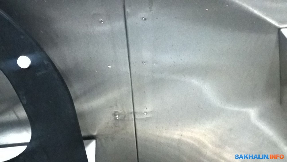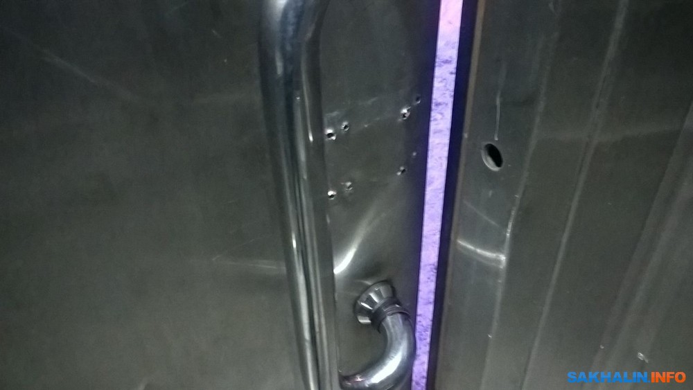 Как рассказывает соавтор ИА Sakh.com, еще до Нового года туалет был цел. Сейчас в нем вырван засов, отодраны перила для инвалидов, свернут кран в умывальнике, расцарапаны стены и зеркало.