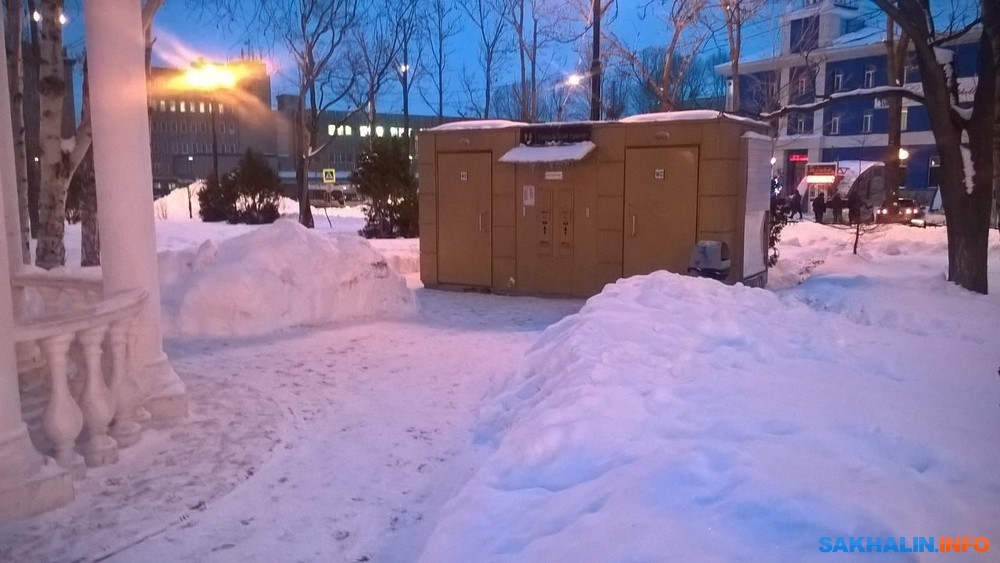 На площади Ленина в Южно-Сахалинске неизвестные повредили общественный туалет.