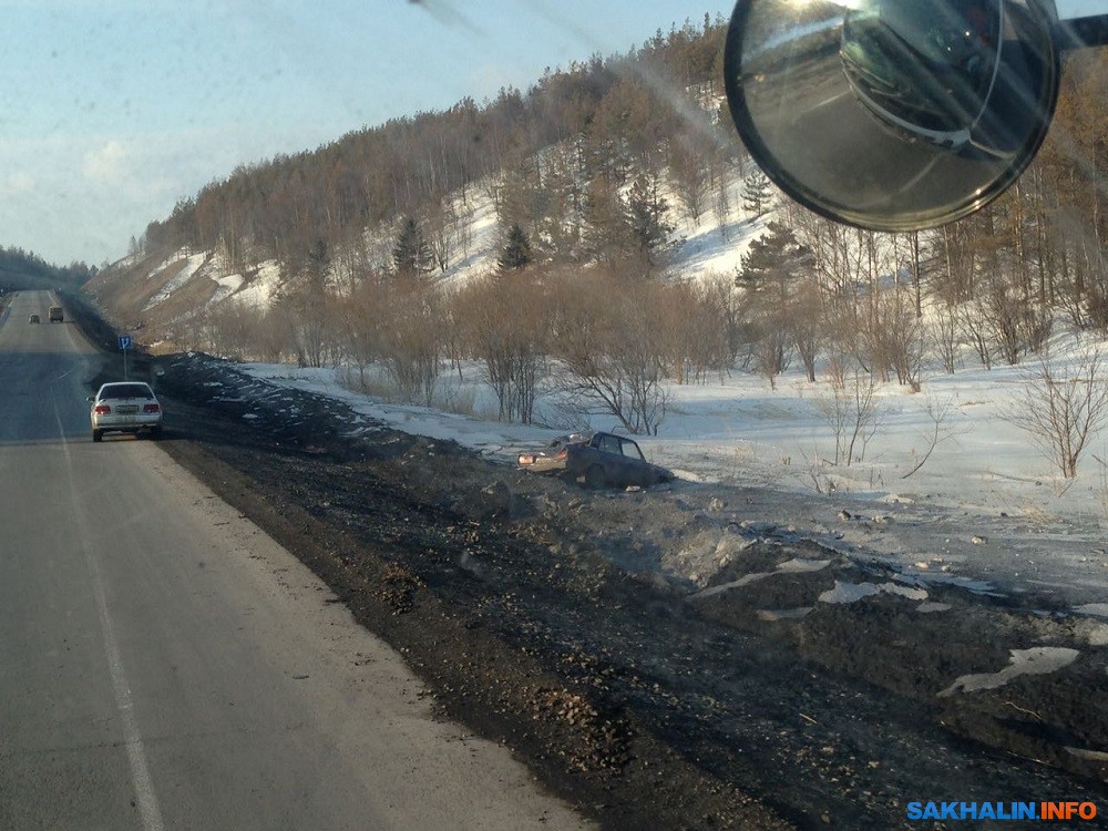 ДТП с участием груженного углем КамАЗа с прицепом произошло сегодня утром на автодороге, соединяющей Углегорск и Шахтерск. Как предполагает соавтор ИА Sakh.com, грузовик догнал "Жигули". Такой вывод можно сделать, глядя на повреждения задней части легкового автомобиля. От удара "Жигули" выкинуло с дороги в кювет, а КамАЗ перевернулся. О пострадавших ничего не известно.