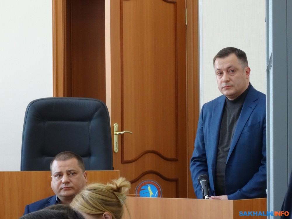 — Являлся ли губернатор распорядителем бюджетных средств? — интересуется Артюхова. Альперович отвечает отрицательно. Эти полномочия принадлежали минстрою и мэрии Южно-Сахалинска.