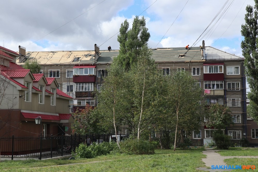 В Южно-Сахалинске приступили к ремонту крыш домов, пострадавших во время циклона
