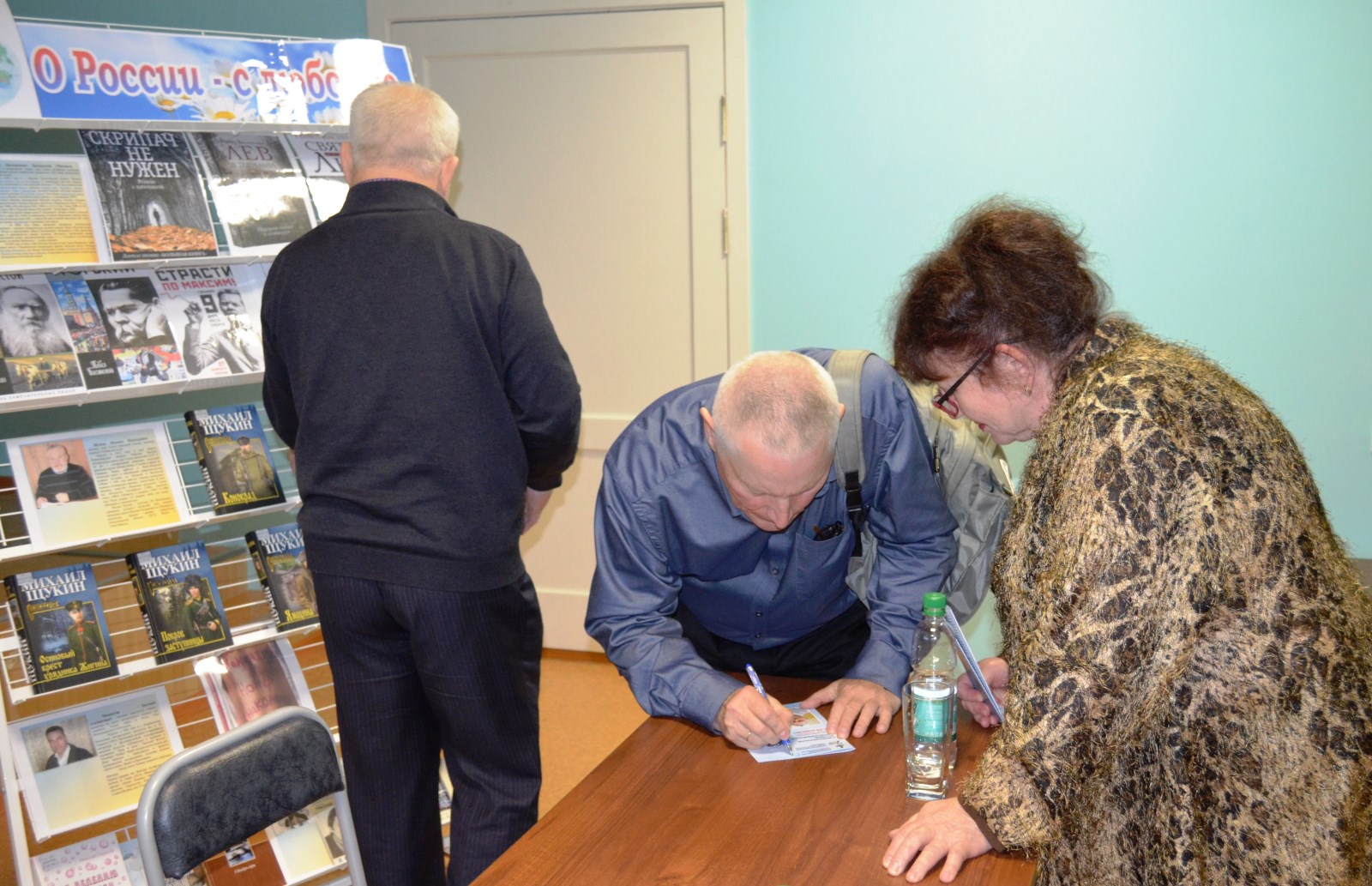 Писатель и редактор журнала "Сибирские огни" Михаил Щукин поделился, что ему приятно, оказавшись в первый раз на Сахалине, увидеть в библиотеке свои книги из серии "Сибириада". Говоря о значении современной патриотической литературы, он отметил, насколько нужны книги о России, о глубинке, о том, как исторические события влияют на жизнь частных людей, — это и есть "живая история". Писатель с интересом отвечал на вопросы из зала, в том числе на вопрос об отношении к революции 1917 года.