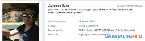 Sakh.com просит обратить внимание сахалинцев, что у Даниила Зуева существует его полный тезка, которого островитяне приняли за преступника. Информационное агентство отмечает, что этот человек не имеет никакого отношения к зверскому убийству, произошедшему ночью возле клуба Duke.