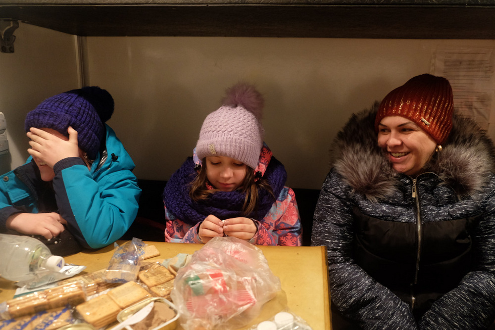 Семью Усачевых пересадили в теплую "вахтовку". Медицинская помощь людям не понадобилась. Спасатели угостили их горячим чаем и покормили.
