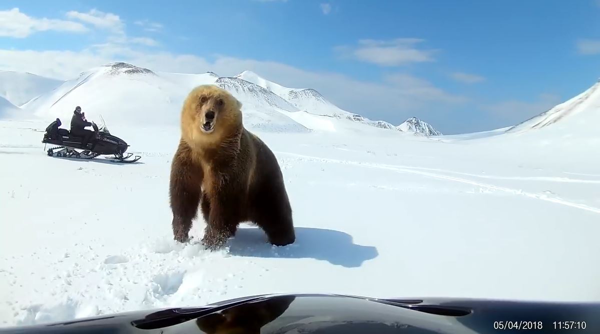 Курильчане на снегоходах устроили "гонки" с медведем на острове Парамушире 5 апреля в районе озера Глухого. Сахалинцы подвергли опасности не только свои жизни, но и жизнь медведя, который только вышел из спячки и искал еду. Животное явно находилось в состоянии стресса.