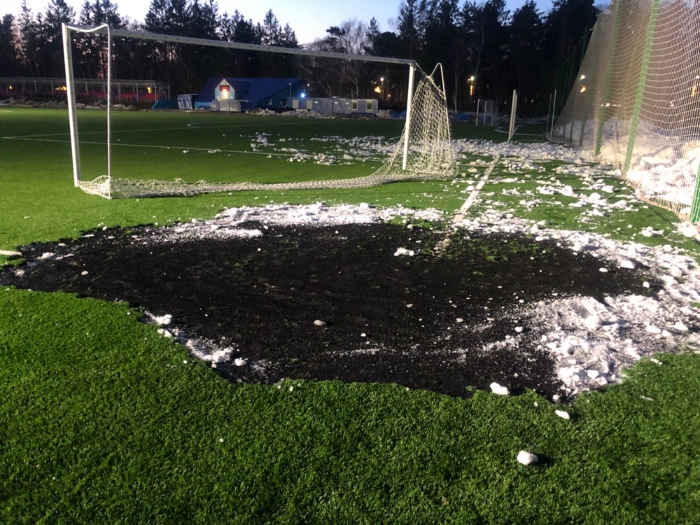Вандалы подожгли искусственное покрытие поля на стадионе "Космос" в Южно-Сахалинске