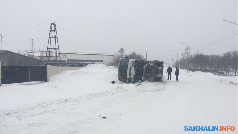 В Охе на улице Невельского перевернулся автобус