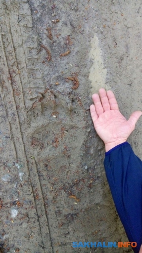В редакцию ИА Sakh.com прислали фотографии следов медведя, оставленные в районе лыжероллерной трассы в Южно-Сахалинске. Снимок с пометом был сделан на прошлой неделе непосредственно на самой трассе, а фотография со следом лапы свежая — сделана сегодня в районе водохранилища по дороге на Чеховский перевал.