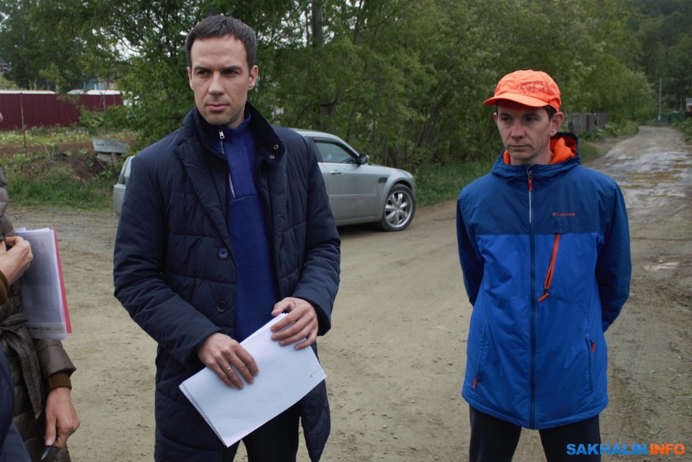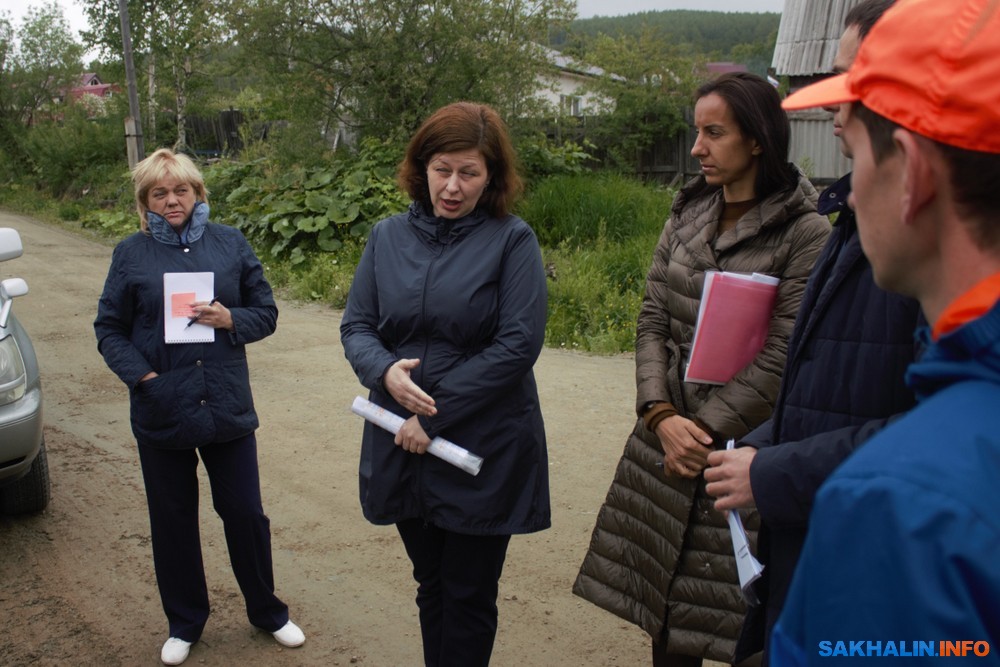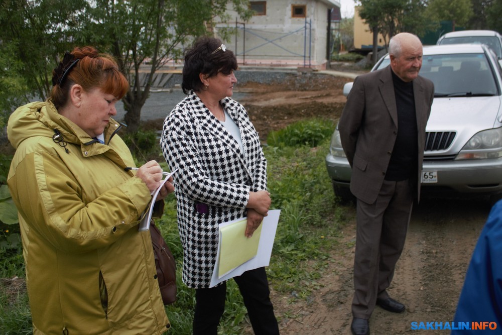 Многомесячная переписка с департаментом архитектуры и градостроительства администрации ничего не решала, поэтому сахалинцы привлекли к решению депутата городской думы Сергея Шарова и антикоррупционного эксперта Дениса Адылова. Они организовали встречу с главой отдела генплана и планировки территорий Ольгой Коробейниковой, которая вместе со своим специалистом выехала в "поля", чтобы возле домов островитян поговорить об их проблемах.