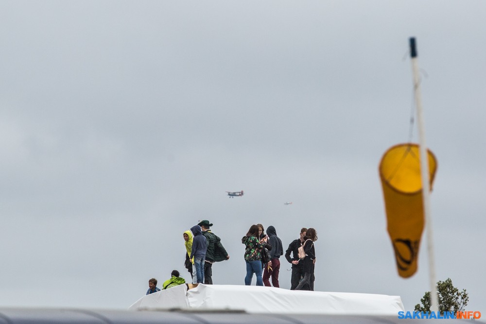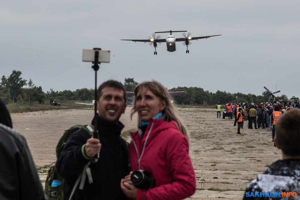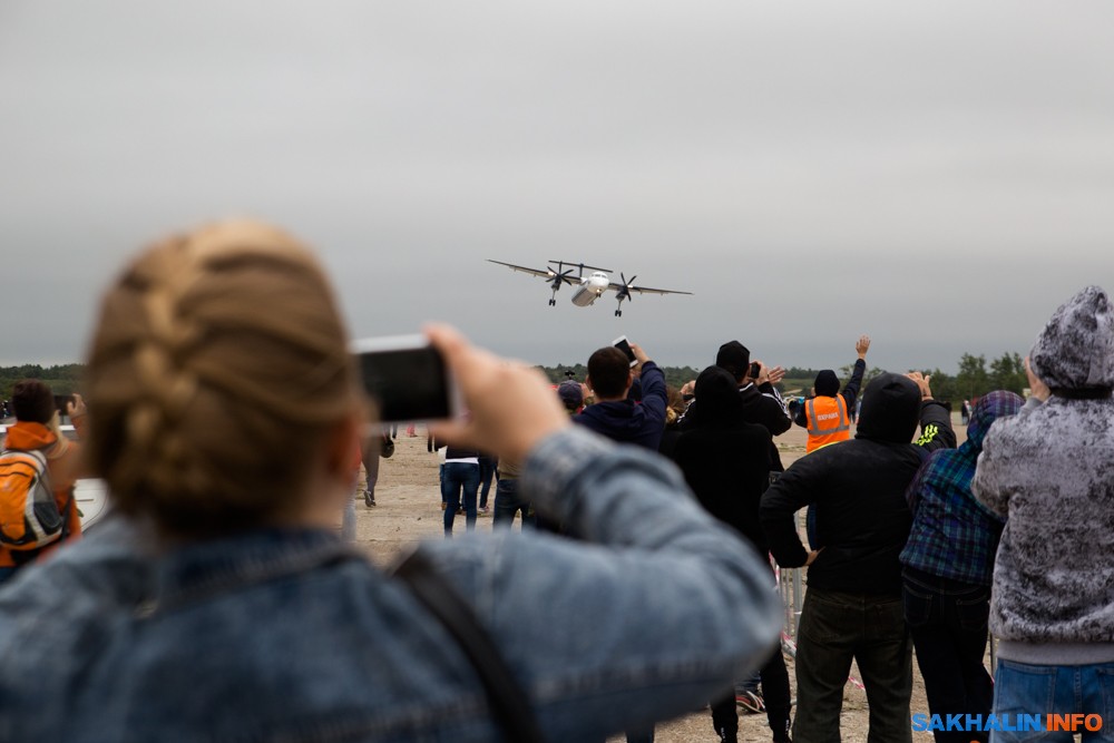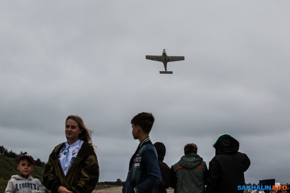 Поприветствовали гостей фестиваля и с борта "Авроры" — регулярные рейсы авиакомпании уже традиционно заглядывают на аэродром. В этот раз изящный DASH-8 совершил над полем несколько проходов на малой высоте, взмахнул крылом и вернулся к будничным обязанностям по доставке пассажиров на Курилы.