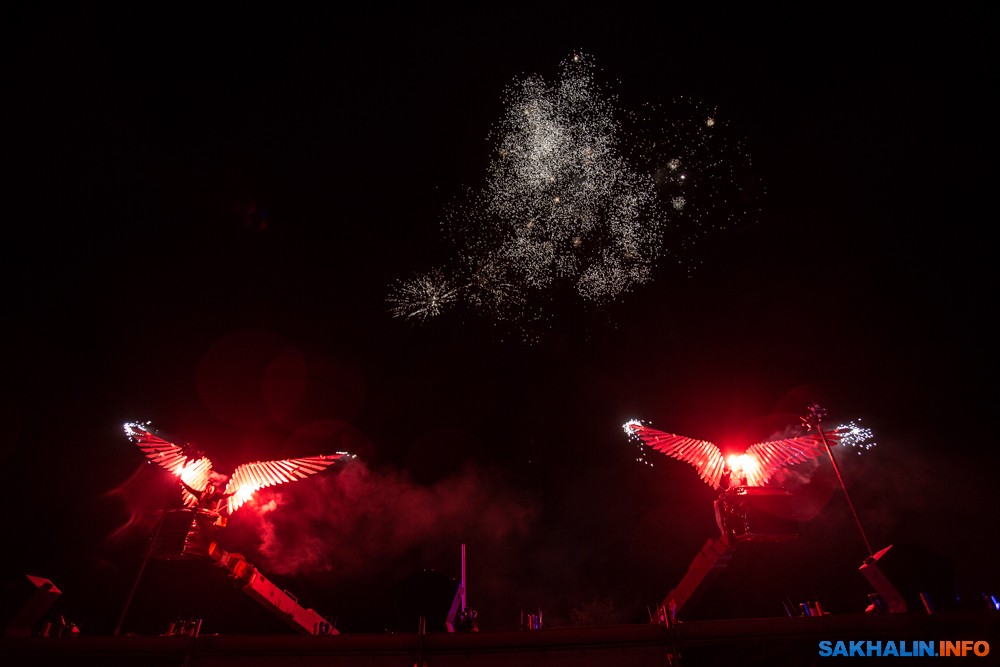 Финалом вечера стало большое фейерверк- и фаер-шоу. Около 30 минут небо над Пушистым было наполнено светом и музыкой, а на земле в это время в такт разворачивалось огненное действо.