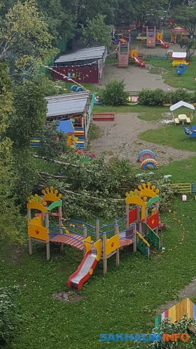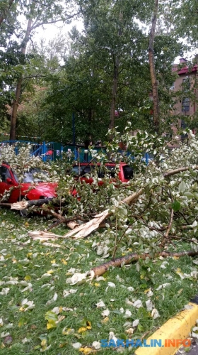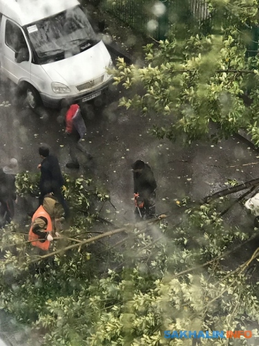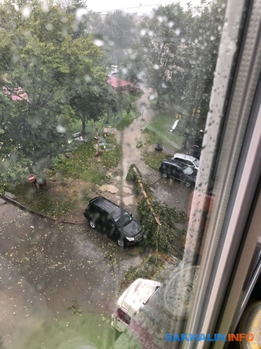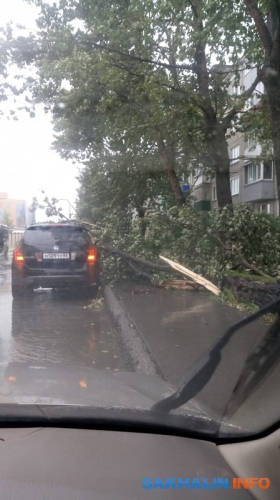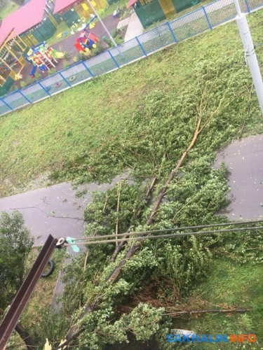 Очередное падение деревьев зафиксировали сахалинцы: два ствола упали на пешеходной дорожке в районе Пуркаева — Комсомольской, а ещё одно дерево повисло на проводах напротив дома по . Люди обратились к спасателям по номеру 112, и они обещали выехать на место происшествия.