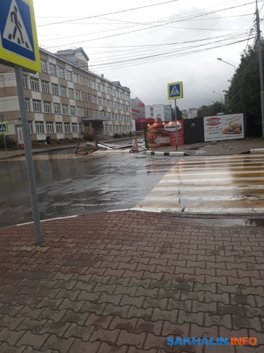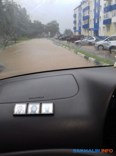 В редакцию ИА Sakh.com начали поступать сообщения от жителей центральных районов Сахалина. Таким образом, тайфун точно добрался и начал топить улицы Поронайска и Макарова.