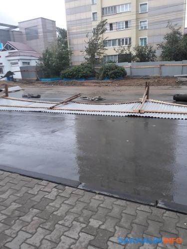 В Холмске ветром повалило ограждение.