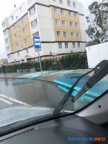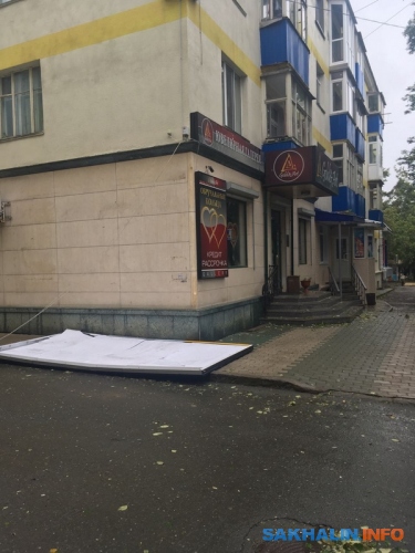 — Рекламный щит на моих глазах упал от порыва ветра напротив магазина "Октябрьский" в планировочном районе, — рассказывает соавтор Sakh.com. К счастью, падающая конструкция приземлилась аккурат в небольшой овраг, поэтому никого из сахалинцев не задело.