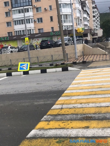 Пешеходный светофор вместе со столбом упал в Хомутово на федеральной трассе после поворота на аэропорт, если ехать с севера на юг. Объект перекрыл одну полосу для движения автомобилей. По сообщению другого соавтора Sakh.com, в том районе большинство светофоров вовсе не работают из-за отключения света.