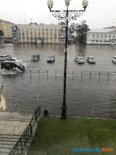 В Поронайске затопило площадь.