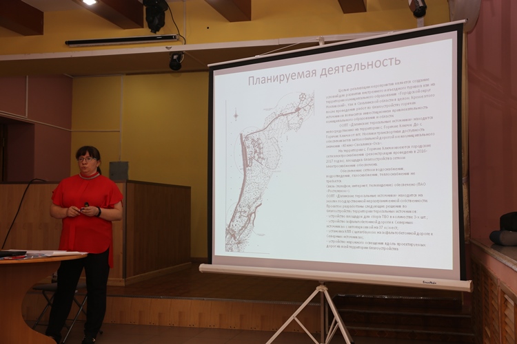 В рамках создания условий для развития внутреннего и въездного туризма в зале районного центра досуга в Ногликах прошли общественные слушания "Создание условий для развития туризма по благоустройству особо охраняемой природной территории "Дагинские термальные источники".