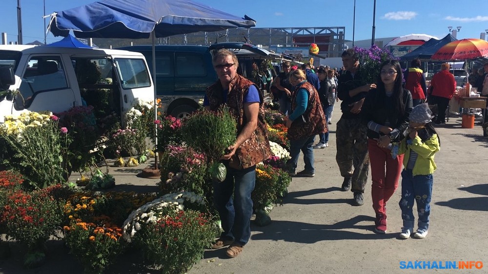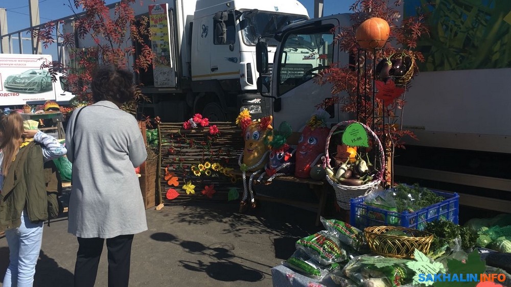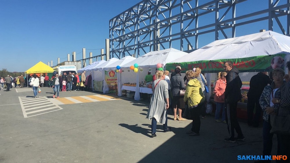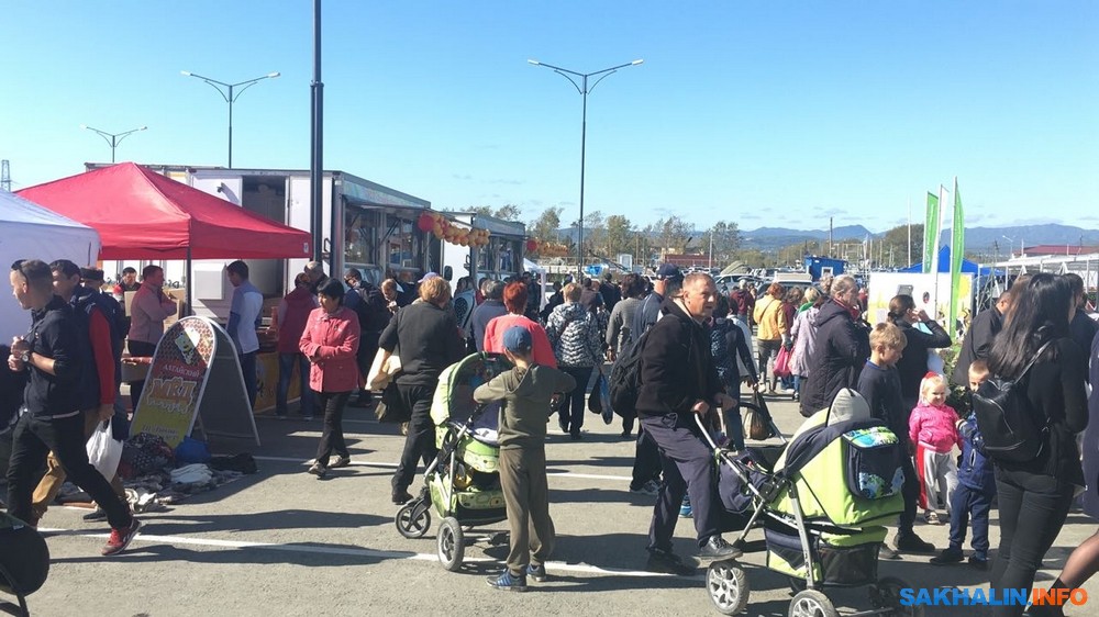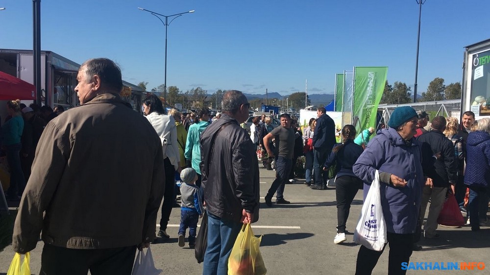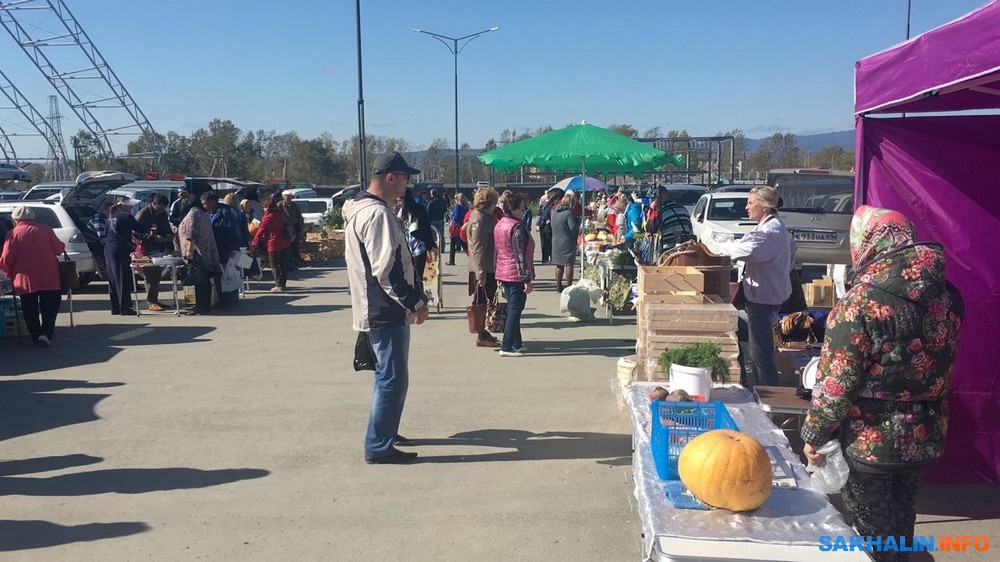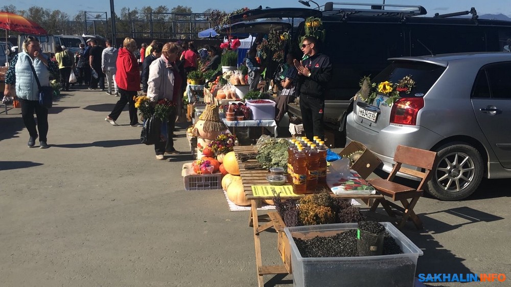 Сегодня в районе ТЦ "Аллея" проходит областная ярмарка "Золотая осень". Можно сказать, что она пользуется спросом — народу на ярмарке много. Формат мероприятия никак не изменился — торговые палатки выставили крупнейшие предприятия агропромышленного комплекса Сахалинской области и частные фермерские хозяйства, а также сахалинские мастерицы, дачницы, владельцы индивидуальных земельных участков. На ярмарке продаётся рассада, мясо, овощи и всё, чем обычно торгуют в подобных местах. В этом году на прилавках много тыкв, но, похоже, они не пользуются большим спросом.