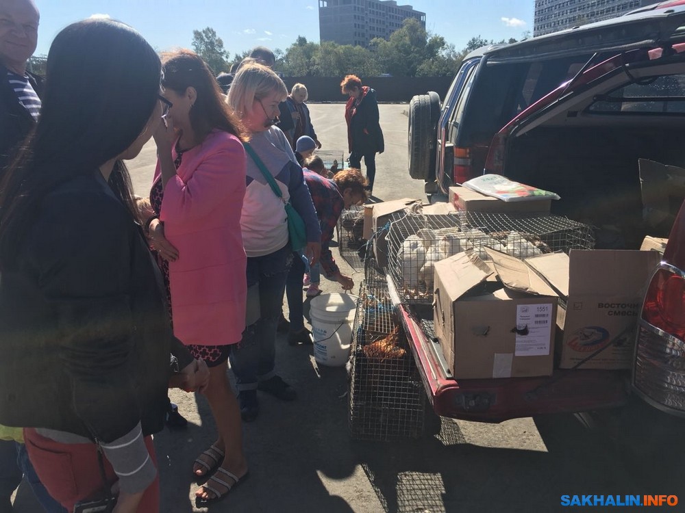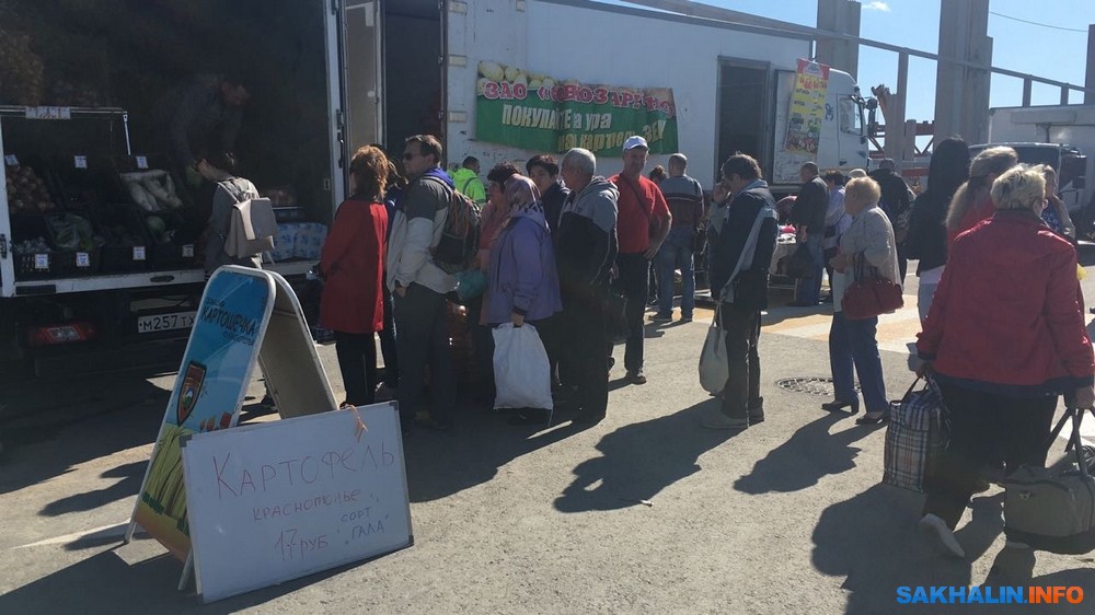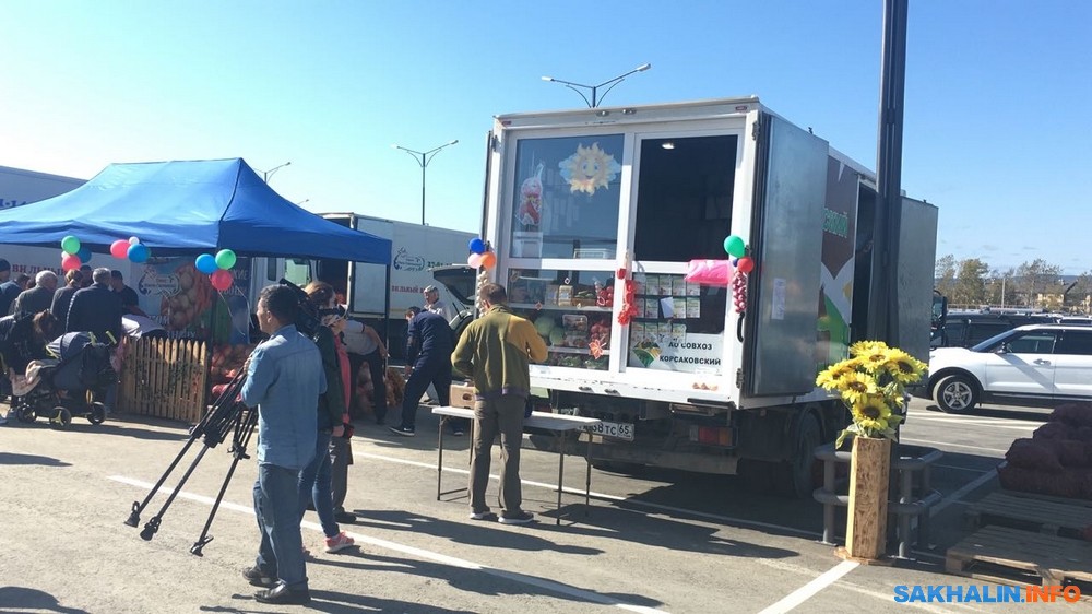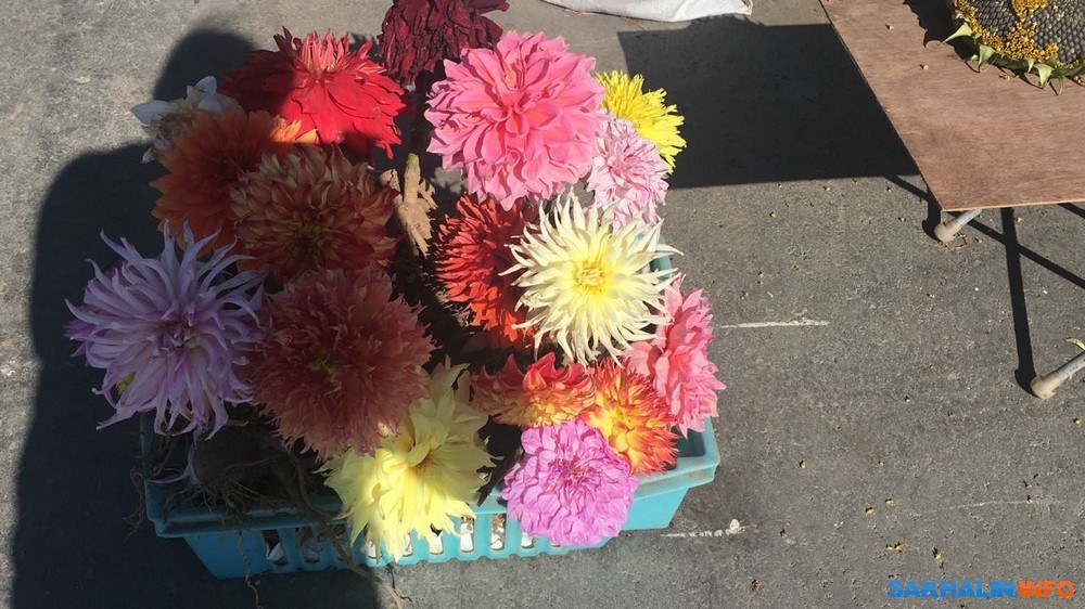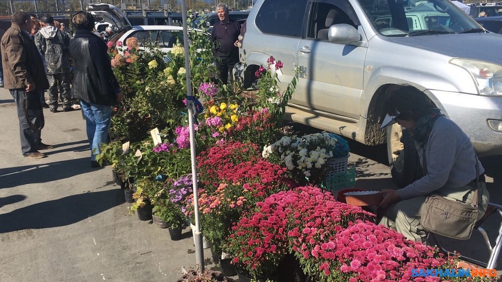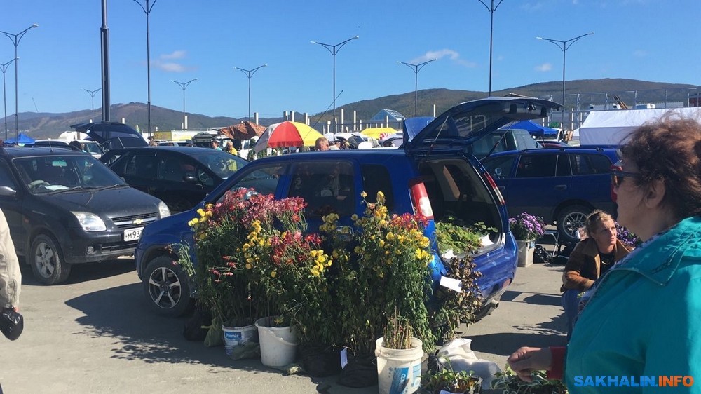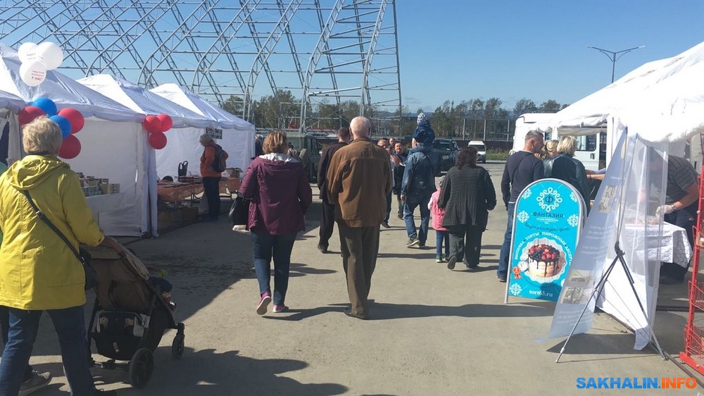 Сегодня в районе ТЦ "Аллея" проходит областная ярмарка "Золотая осень". Можно сказать, что она пользуется спросом — народу на ярмарке много. Формат мероприятия никак не изменился — торговые палатки выставили крупнейшие предприятия агропромышленного комплекса Сахалинской области и частные фермерские хозяйства, а также сахалинские мастерицы, дачницы, владельцы индивидуальных земельных участков. На ярмарке продаётся рассада, мясо, овощи и всё, чем обычно торгуют в подобных местах. В этом году на прилавках много тыкв, но, похоже, они не пользуются большим спросом.