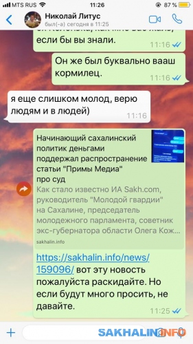 Как стало известно ИА Sakh.com, руководитель "Молодой гвардии" на Сахалине, председатель молодежного парламента, советник экс-губернатора области Олега Кожемяко по молодежной политике проплатил владельцу пабликов в социальных сетях на Сахалине размещение новости "Примы Медиа" про выигранный ею суд. Вчера Sakh.com , что указание перепечатать статью поступило во все подконтрольные ПСО СМИ, и это сделали "Губернские ведомости", "Советский Сахалин", АСТВ, "Ситисах". Однотипные посты появились и в соцсетях, в частности, в "ВКонтакте". За каждый из них, сообщает источник Sakh.com, Литус перевел не менее 4000 рублей. Откуда у него эти деньги, непонятно, зато известно, что за политическую рекламу он готов платить в два раза больше от обычной таксы.