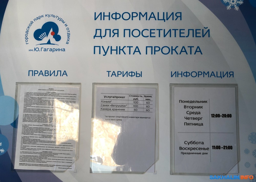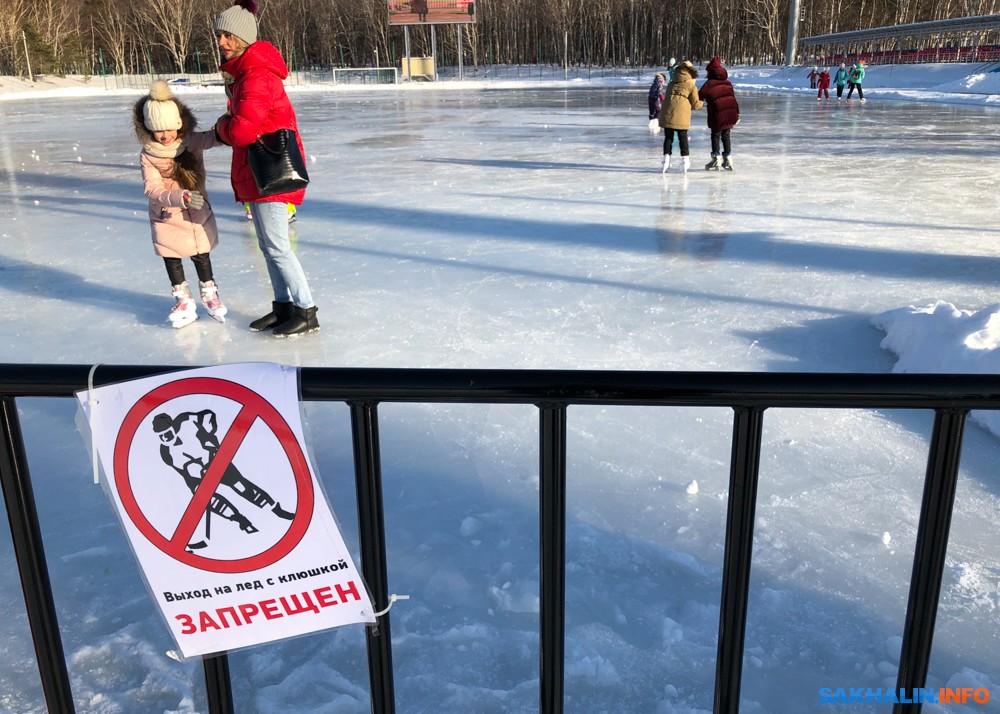Каток на территории стадиона "Космос" в городском парке имени Гагарина, по всей видимости, пользуется популярностью среди южносахалинцев. Хотя он еще не готов принять большое количество людей. Сегодня он разграничен на две части — на маленький и большой, и пока что можно кататься только на той части, что поменьше. Но запрещающие ограждения — не стены, подвинутся, поэтому некоторые сахалинцы предпочитали проводить время на большой части катка, которая совершено не готова для этого. Лед на той части весь в буграх, трескается под ногами. Охрана на территории стадиона никак не пресекает это.