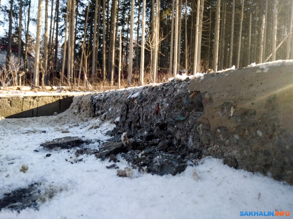 Ступенчатый тротуар обновленной дороги к сахалинскому "Горному воздуху" не пережил зиму