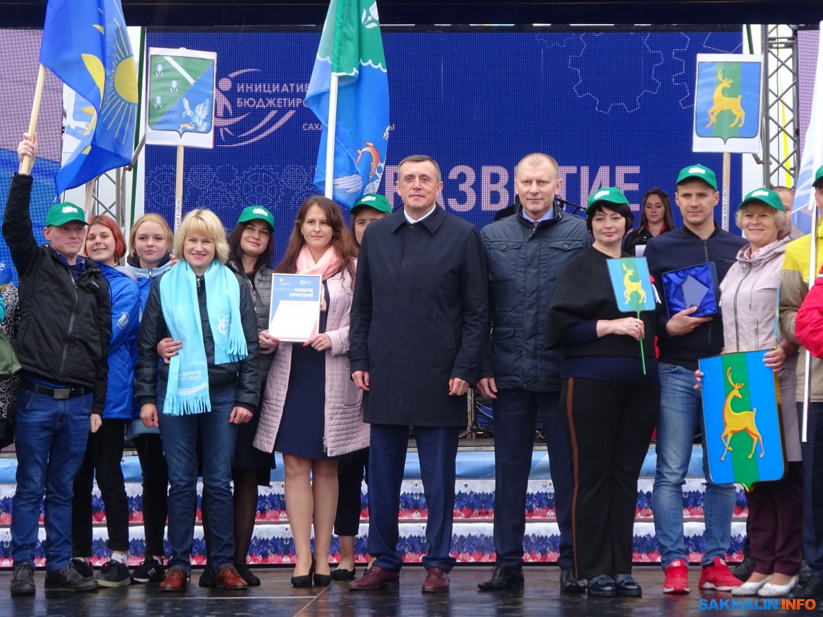 Сегодня, в День России, в Южно-Сахалинске подвели итоги проекта "Развитие территорий". Лидеры инициативного бюджетирования из разных районов области поднялись на сцену перед историческим парком "Россия — моя история" и получили хрустальные ромбы, аплодисменты и гарантию того, что их проекты будут реализованы.