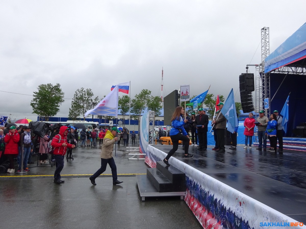 Первой на сцену поднялась делегация из Корсаковского района, предложившая проект "Территория спорта", который предусматривает обустройство парка культуры и отдыха в Корсакове. За это проголосовали 3170 человек.