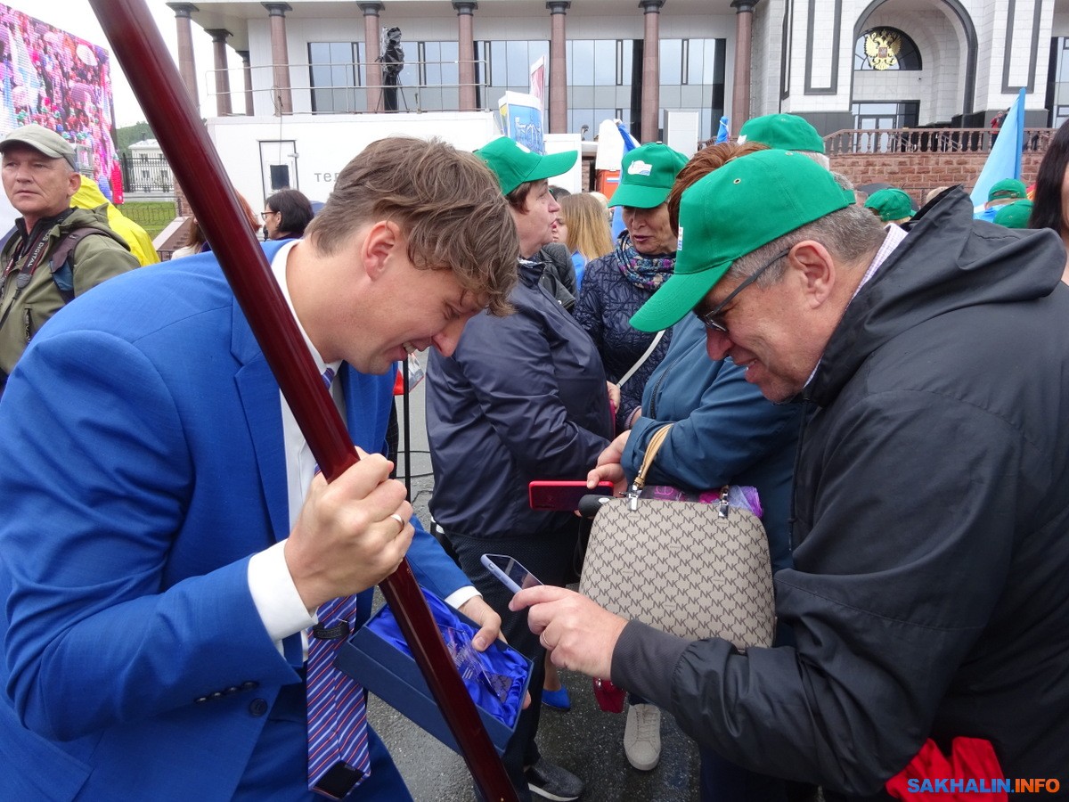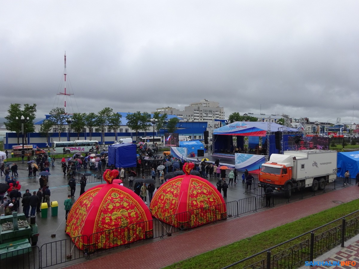 — Всем большое спасибо, что за нас проголосовали, что дали воду в Охотское, спасибо, с праздником! — прокричал со сцены мужчина.