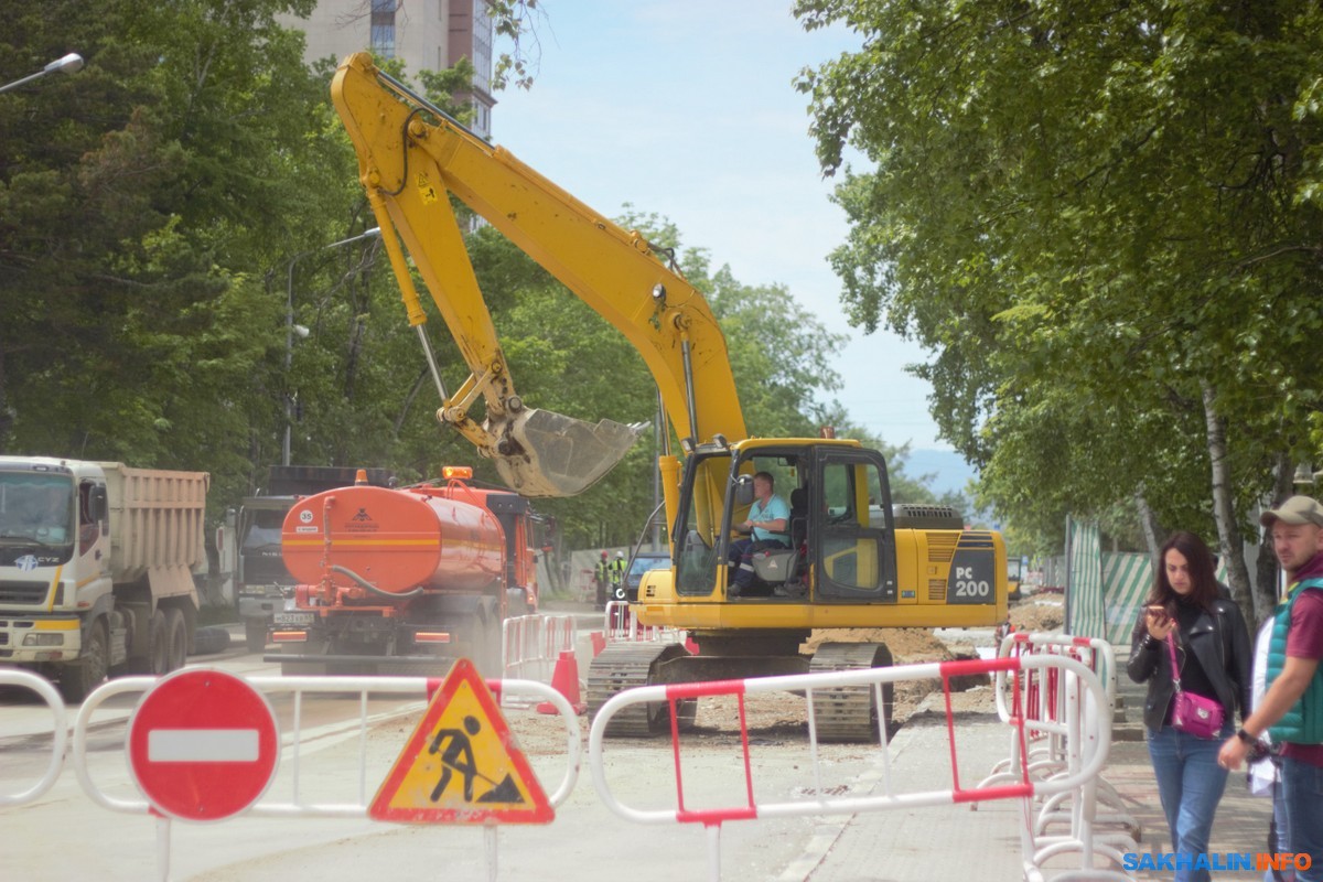 Врио губернатора Сахалинской области Валерий Лимаренко вместе с мэром Южно-Сахалинска Сергеем Надсадиным проверили, как идёт ремонт Коммунистического проспекта в районе краеведческого музея. Подрядчик доложил, что на улицу вышли 13 мая, полностью закроют проект до Горького до 1 декабря.